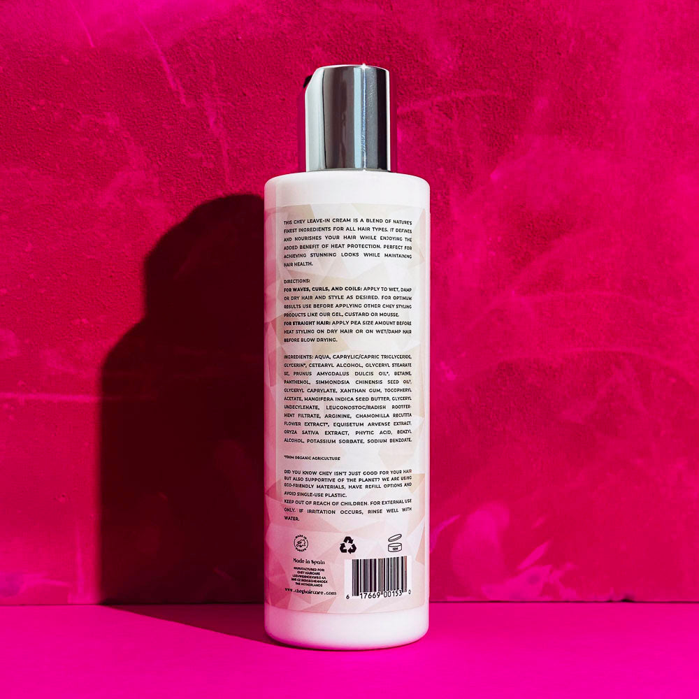 Okay, hier kommt das Rundum-Sorglos-Paket für Deine Locken: Hitzeschutz, Leave-in Conditioner und das auch noch ohne Duftstoffe plus: geeignet für die Curly Girl Methode. Hier ist er! Der Heat Protectant von Chey - ein Leave-in Conditioner, der Deine Locken beim Hitzestyling schützt und sie gleichzeitig pflegt und stärkt.