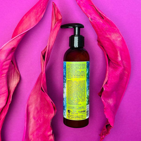 Dieser Creamwash enthält jede Menge Aminosäuren, Mineralien, Methi, Katira, fermentiertes Reiswasser, Hyaluronsäure und Auszüge aus Kiwi, Guarana, Lotus, Ingwer, fermentiertem Rettich und Süßorange. Wow! Man könnte die Inhaltsstoffe auch als Superfood für die Haare bezeichnen. Während Deine Kopfhaut und Deine Locken gereinigt werden, werden sie also gleichzeitig versorgt und gestärkt.